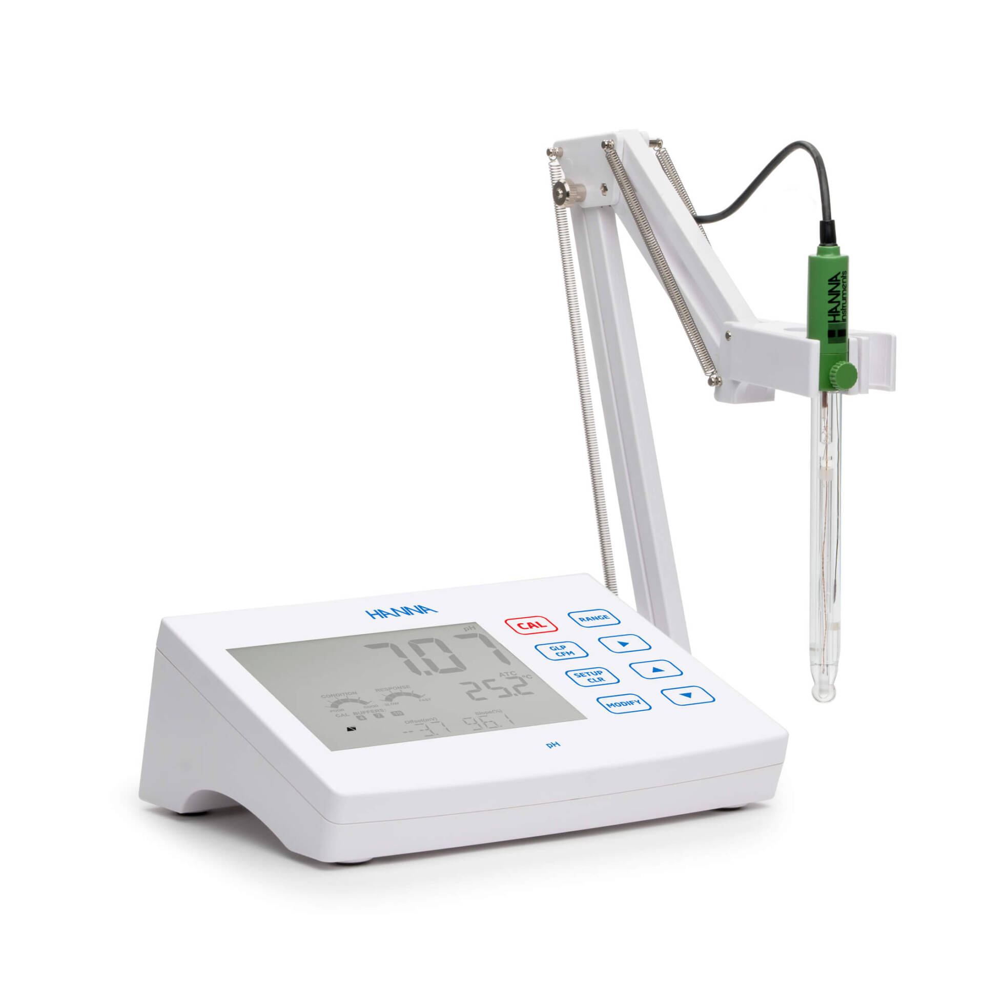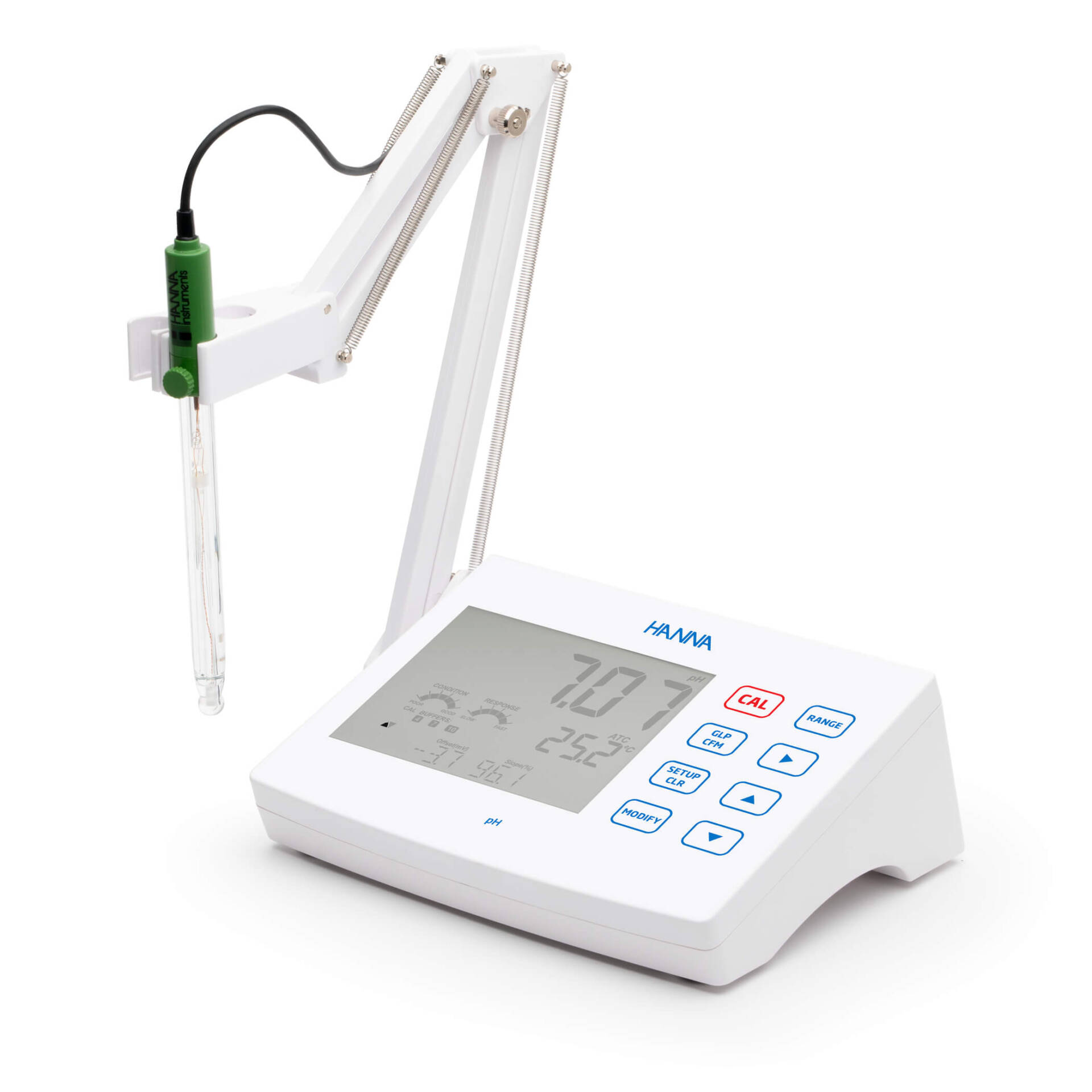 La función CAL Check, exclusiva de Hanna, analiza la respuesta del electrodo de pH en los